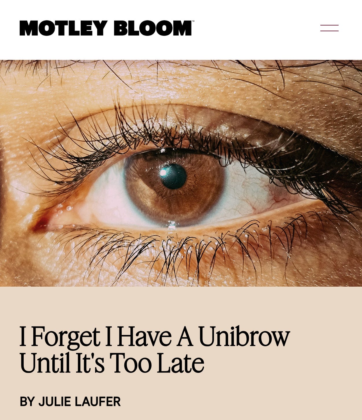 Because yes, I got published. My essay I Forget I Have a Unibrow Until It’s Too Late was featured in Motley Bloom, a publication focused on sharing Neurodivergent stories and experiences. It was an essay I was really excited to write, and I feel like it landed in the right hands.