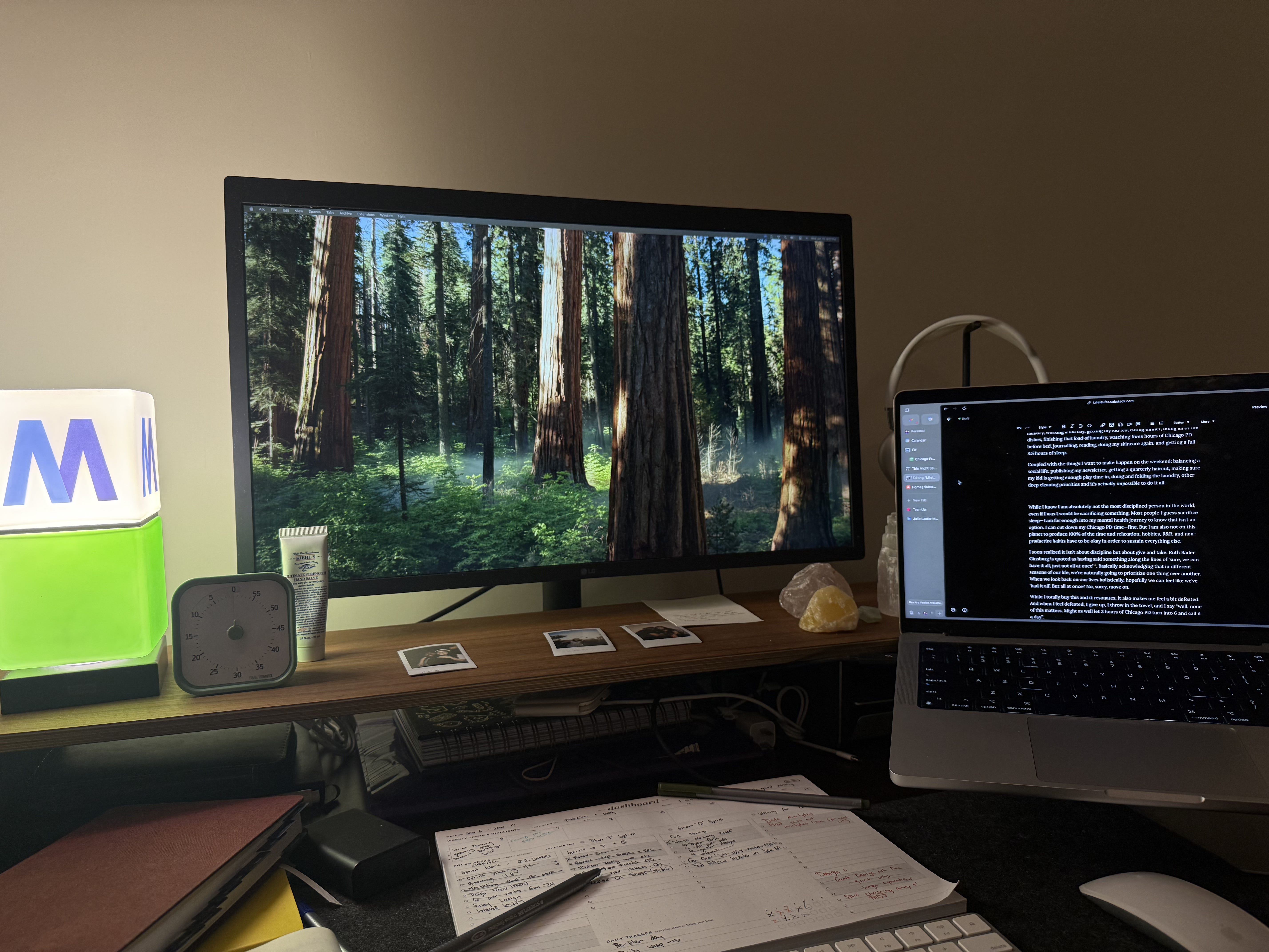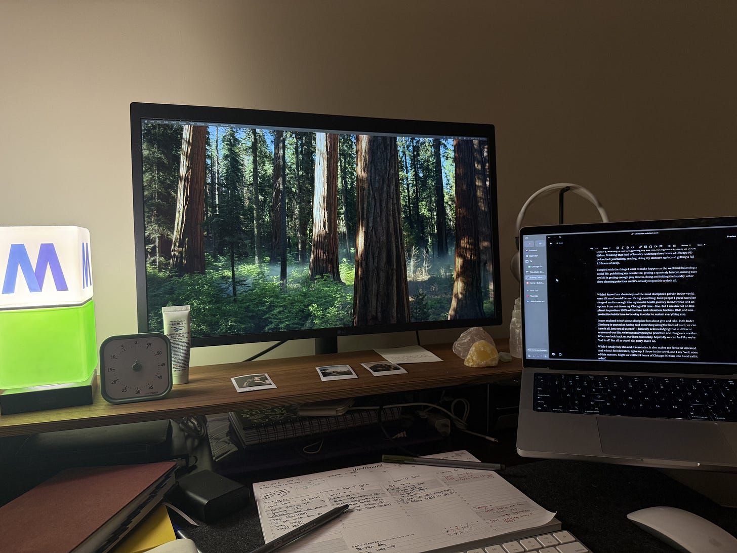 When I wrote out everything I wanted to do in a week, I very quickly understood that I unfortunately don’t have enough hours2. In my head, my perfect Monday-Friday routine is something like: waking up, writing, getting my kid ready for daycare, working out, doing my skincare, starting a load of laundry, working a full day, getting my kid fed, eating dinner, doing all of the dishes, finishing that load of laundry, watching three hours of Chicago PD/Fire/Med before bed, journalling, reading, doing my skincare again, and getting a full 8.5 hours of sleep.