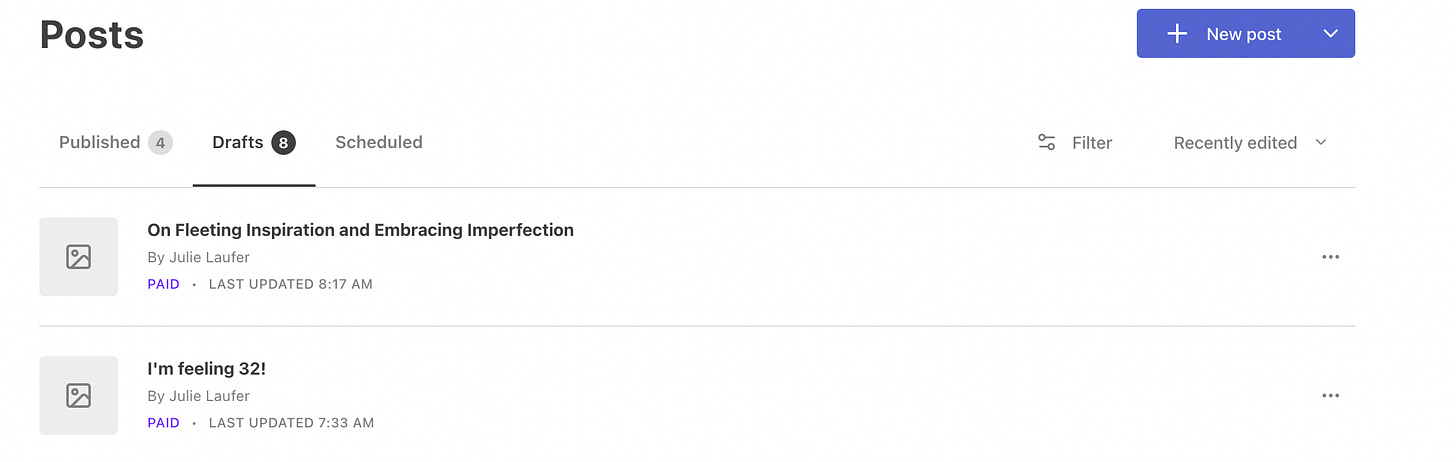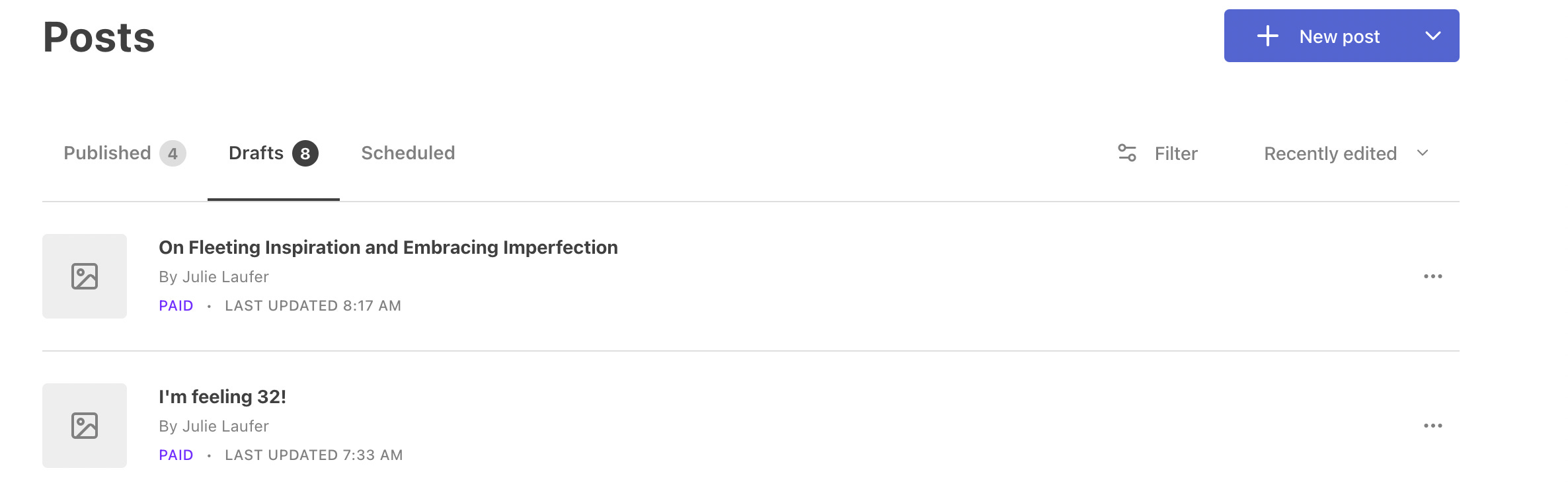 It’s not that I haven’t wanted to write. I currently have 8 drafted posts living in my Substack dashboard, just waiting for another round of inspiration to be finished beyond that opening paragraph (some I fear are too late to publish, like the post I started on my 32nd birthday a month ago about birthdays or the letter I wrote to the NYCDOL about the unemployment process). But every time I sit down to write something, I just haven’t felt inspired enough, or what I want to write about is interesting enough. Or I try to squeeze in a post about a specific topic that I don’t fully care about or feel committed to and then I feel like I can’t be fucked to finish it (or in many cases, take it past that first paragraph). So I don’t finish, or don’t start, and I say ‘next time’.