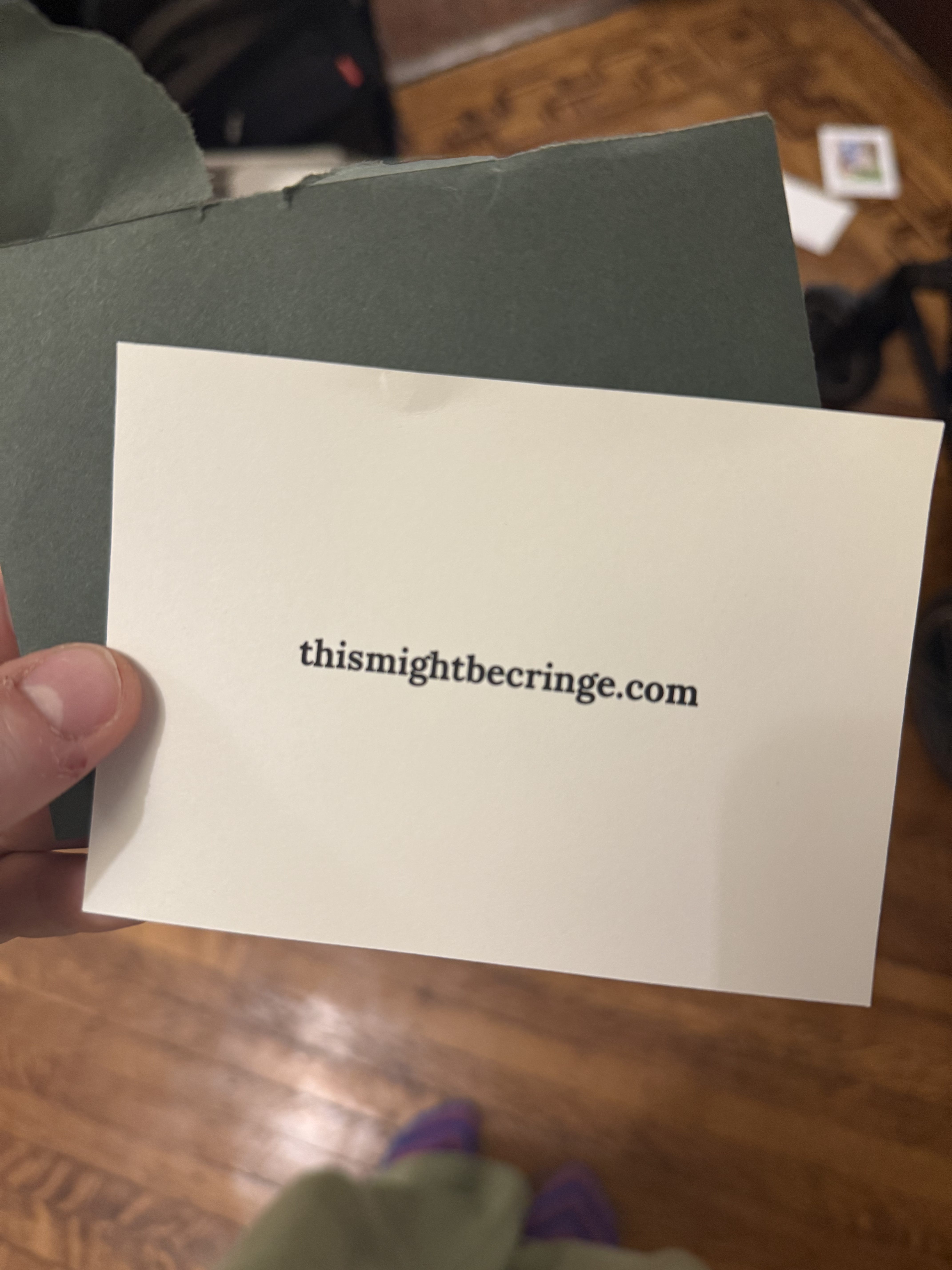 You may have noticed that some things look a little bit different around here! I’m very excited to introduce the new visual identity for This Might Be Cringe, designed by the very talented (and hunky1) Petal. As always, Devlin (yes, my husband) nailed everything when I gave him absolutely nothing2. I think it looks fantastic and love it all. ❤️🔥