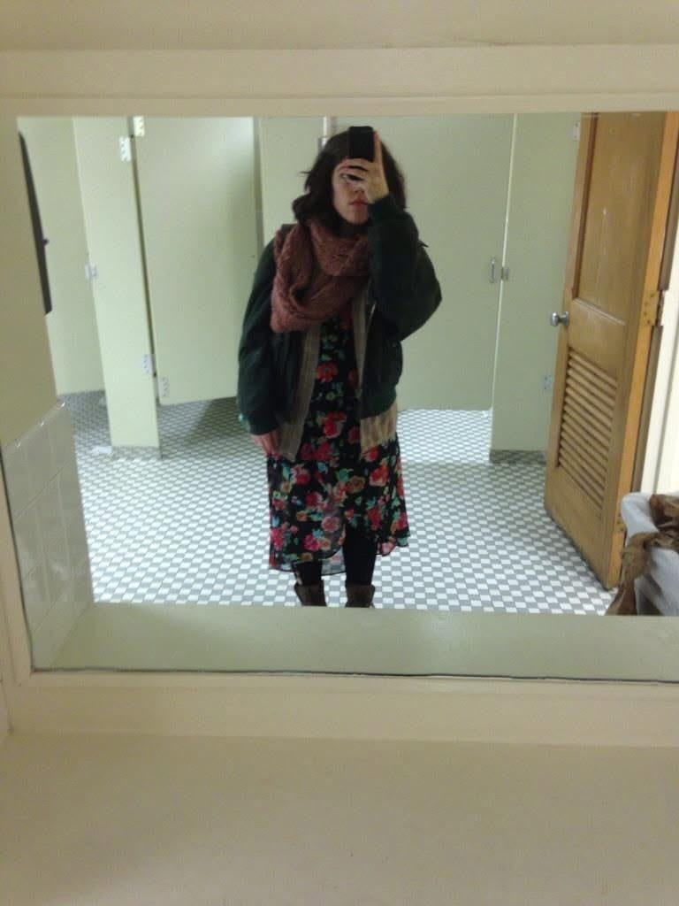 At some point between my junior and senior year, I started wearing that skirt more — first, as a dress, but then experimenting with it as a skirt. I had thought it was cool ever since I bought it, but I also finally enjoyed wearing it. I had started adding more and more florals to my wardrobe, and it seemed like that’s what was needed for the skirt to cement its place in my life.