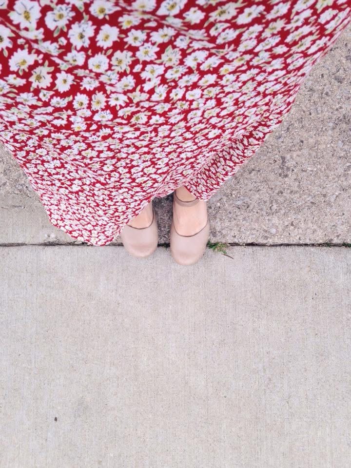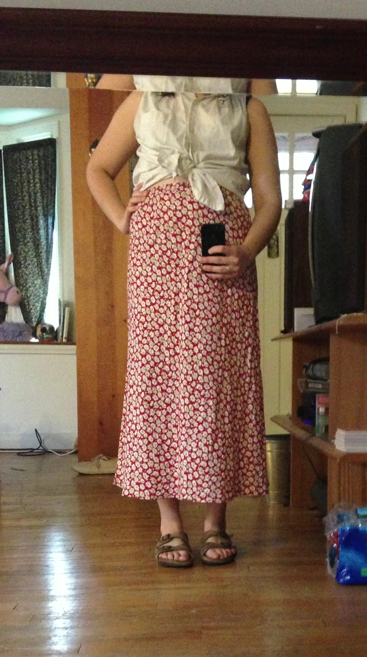 And I know I walked away with a bag of treasures — one of them was a red, floral skirt. I paid $3 for it.