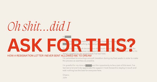 I typed up a resignation letter and started to dream. I never sent it, but now I'm wondering...did I ask for this?