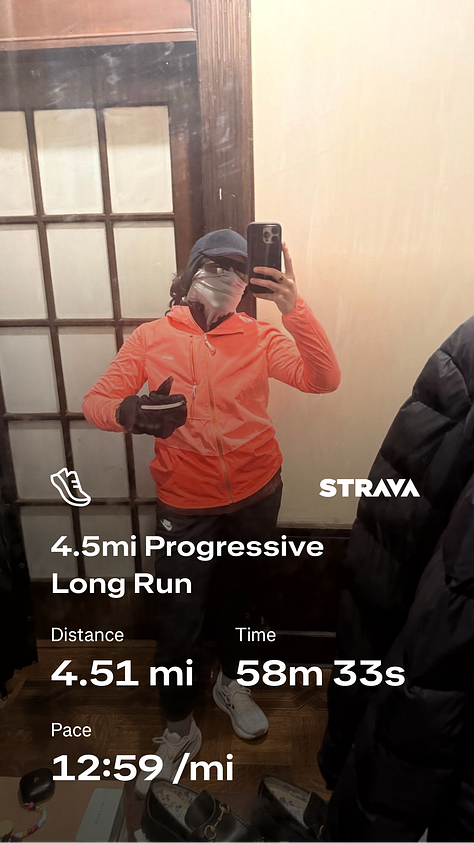 On the outside, my week probably doesn’t look like rest. But to me, the luxury of waking up at 9am, of just being responsible for myself, for being able to throw on an album while I clean out the fridge or break down boxes is in fact a form of relaxation. But so is balancing it with a slow morning spent reading, or writing at a cafe, or getting outside to run four miles in 31º F4 weather that “feels like” 17º5.